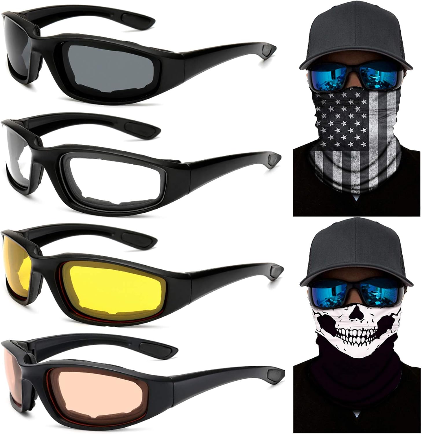 - 6 PACKS MOTORCYCLE GEAR SET – 4 packs dirt bike motorcycle motocross goggles with 1 pack skeleton face mask and 1 pack USA flag snowboard face mask. Great motorcycle accessories for men and women, using them on the motorcycle, dirt bike, snow, riding, cycling, mountain bike, running, climbing, fishing, skydiving, offroad, outdoors and sports, snowmobile, motocross, snowboarding, skating, etc. It is suitable for outdoor, night travel, cloudy, rainy, foggy, and snowy days.